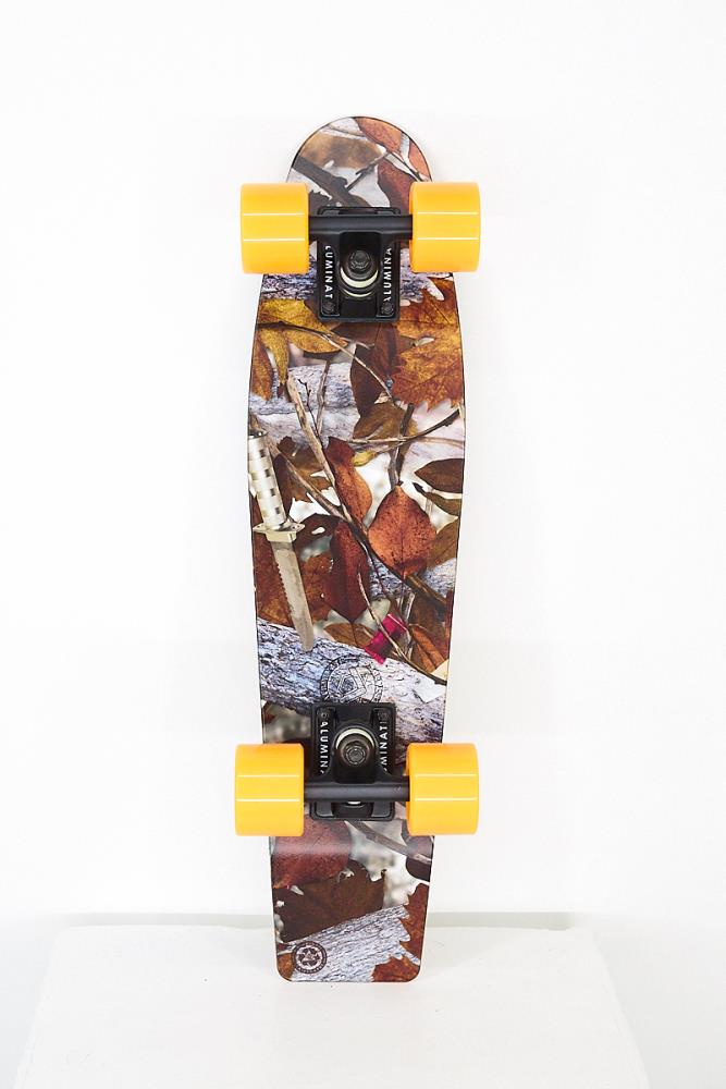 Aluminati Complete Cruiser Foxtrot [Modell Goby]Length: 24 inchesWidth: 6 inchesAluminati Grip3.25 inch Aluminati Trucks78A 60 mm Aluminati WheelsAbec 7 bearingsDarf ich bitten? - Eine Runde Foxtrot mit dem Aluminati Minicruiser Foxtrot. Das kleine Skateboard aus Aluminium bringt dich mit vielSchwung durch deinen Alltag. Cruise damit durch die City, zur Arbeit oder in die Schule. Wenndu ihn nicht brauchst, verstaue ihn einfach im Rucksack, unterm Schreibtisch oder imSchließfach. Denn mit seiner kompakten Größe von knapp 61 cm ist er klein genug und nimmtwenig Platz weg. Dank seines voll funktionalen Tails, kannst du ihn auch problemlos mit in denSkatepark nehmen oder auch mal einen Ollie auf den Bordstein rauf oder runter machen.Gefertigt wurde der Aluminati Cruiser aus recyceltem Aluminium, das aus derFlugzeugherstellung stammt und ist somit sehr stabil. Hinzu kommt der Stylefaktor, denn dieGrafik ist nicht nur auf der Unterseite des Decks erkennbar sondern auch auf der Oberseite. Unddu brauchst kein zusätzliches Griptape drüber zu kleben, denn die Jungs und Mädels vonAluminati haben ein spezielles Clear-Grip entwickelt um dir gleichzeitg guten Halt auf demBoard und freie Sicht auf das Design zu geben. Der Foxtrot-Cruiser kommt in einem Fotodesign,das von Abenteuern im Wald erzählt und ist bereit neue Abenteuer mit dir zu erleben!ALUMINATI SKATEBOARDSDen Minicruiser kennen wir ja schon - ein kleines, wendiges Skateboard mit großen, weichenWheels. Dass es den schon aus Plastik gab und wieder neu gibt, ist auch bekannt. Aber jetztkommt ein Cruiser, der aus dem Material besteht, das eigentlich unser Lieblingsgetränk mitwenig Gewicht verpackt und es kühl und frisch hält Aluminium. Die Jungs und Mädels vonAluminati machen schicke und funktionelle Cruiser aus recyceltem Aluminium, welches aus derFlugzeugherstellung stammt. Alle Bestandteile des Cruisers werden von Aluminati in höchsterQualität hergestellt, damit du lange Freude daran hast. Sie bieten die Besonderheit, dass dukratzfeste Grafiken auf der Unter- und sogar auf der Oberseite deines neuen Lieblingscruiserssiehst. Ein revolutionäres Clear-Grip wurde in das Material integriert und sorgt dafür, dass duimmer siehst, was du gerade fährst.