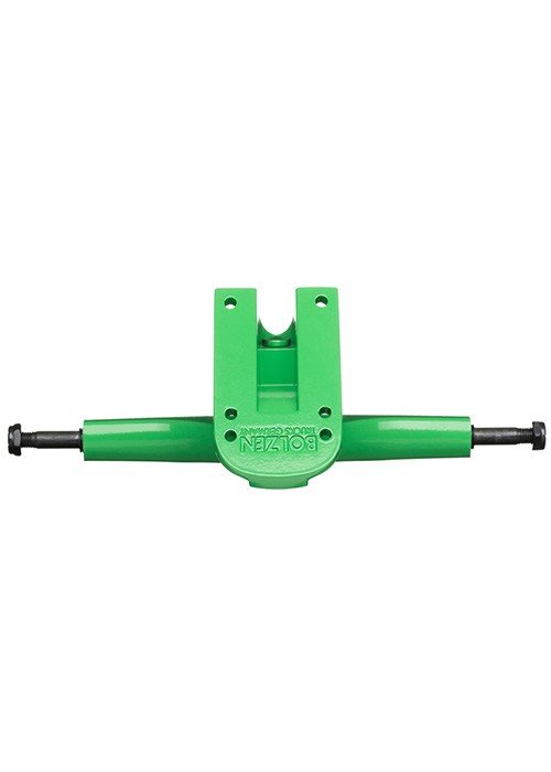 Achtung: Bei diesem Artikel handelt es sich um EINE Achse. Wenn sie ein Set haben wollen bitte bestellen sie 2! Hinter der Marke Bolzen stecken die beiden deutschen Skater Richie Löffler und Heiko Schöller, die dir qualitative Wertarbeit aus Metall, Leder und Kunststoff, verarbeitet in Skate- und Longboardachsen, sowie Slidehandschuhe, Schrauben und Kleinteilen für den Aufbau deines Boards bieten. Jedes Produkt wurde von Langzeit-Skatern aus Deutschland designt und ausgiebig getestet um dir die beste Hardware auf dem Markt zu liefern. Von Skatern geführt und gemacht!Endlich ist sie da die BOLZEN-Achse auf die wir lange gewartet haben. Die deutschen Entwickler der Achse haben in den letzten zwei Jahren viel ausprobiert um ihre hohen Qualitätsansprüche an die BOLZEN-Trucks umzusetzen und hier kommen sie - BOLZEN in 180mm mit 50° Baseplate. Sie vereinen die wichtigsten Eigenschaften an eine Longboardachse - Stabilität und Wendigkeit. Als klassische Reverse-King-Pin Achse aufgebaut, ist sie die perfekte Longboardachse für den Allround-Einsatz. Cruisen, Carven, Freestylen, Freeriden oder Downhill - sie mach alles mit, worauf du Lust hast. Denn sie ist stabil aufgebaut und gleichzeitig sehr lenkfreudig. Die Hanger wurden speziell verstärkt um sie vor Verbiegung zu schützen und die Pivotcups sind besonders langlebig. An den Hangerenden wurden die Achsstifte abgedreht wodurch deine Kugellager perfekt sitzen. Der Kingpin passt optimal und verhindert Verrutschen. Mit einem Achswinkel von 50° ist die Achse für jeden Einsatz bereit und die funtkionelle Breite von 180mm erlaubt es, sie auf beinahe jedes Longboard zu schrauben. Ganz neu kommt sie nun mit hauseigenen Sunrise Gummies Bushings in der Härte 85a und sind daher sofort zum Einsatz bereit. Ein weiteres Highlight sind die besonderen Farbvarianten aus matter Pulverlackbeschichtung, aus denen du wählen kannst. Das Design ist, wie man es von Bolzen kennt "Made in Germany" und entstammt einer Kooperation mit dem Macher von G.O.G. - Frank Beste. Die Achsen wurden von Teamfahrern und Freunden getestet und mit deren Feedback optimiert um dir das beste Produkt zu liefern- von Skatern für Skater!Hochwertige Allround-AchseStabile Hanger verhindern VerbiegungMit Sunrise Gummies Bushings in 85a ausgestattetMit 180mm Breite für fast alle Longboards geeignetDesign und Entwicklung 100% Made in Germany