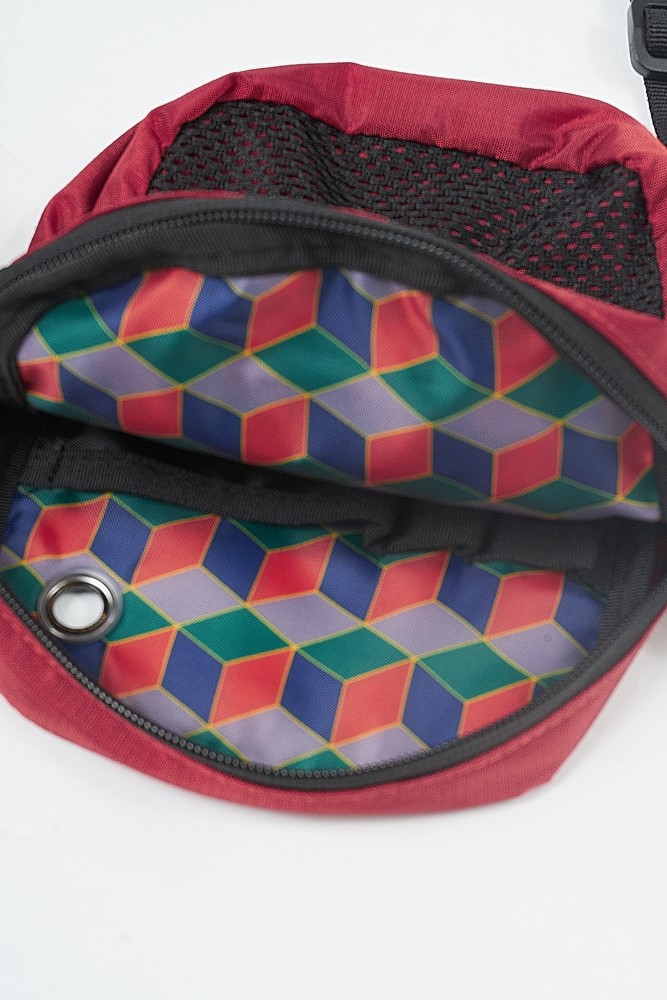 Single CompartmentOutside Pocket & Mesh PouchAdjustable Shoulder StrapIn & Out Multi-Cord Access PortInside OrganizerBumbag Woven LabelDIMENSIONS5.5"(W) x 7"(H) x 2"(D)