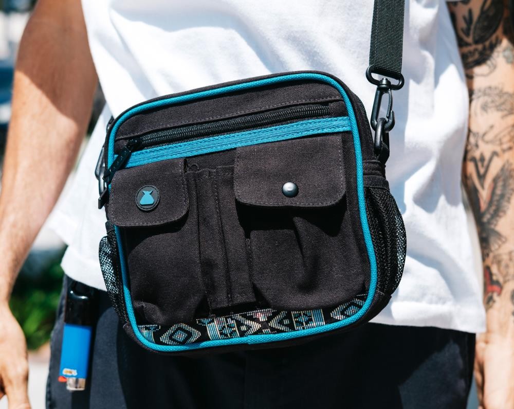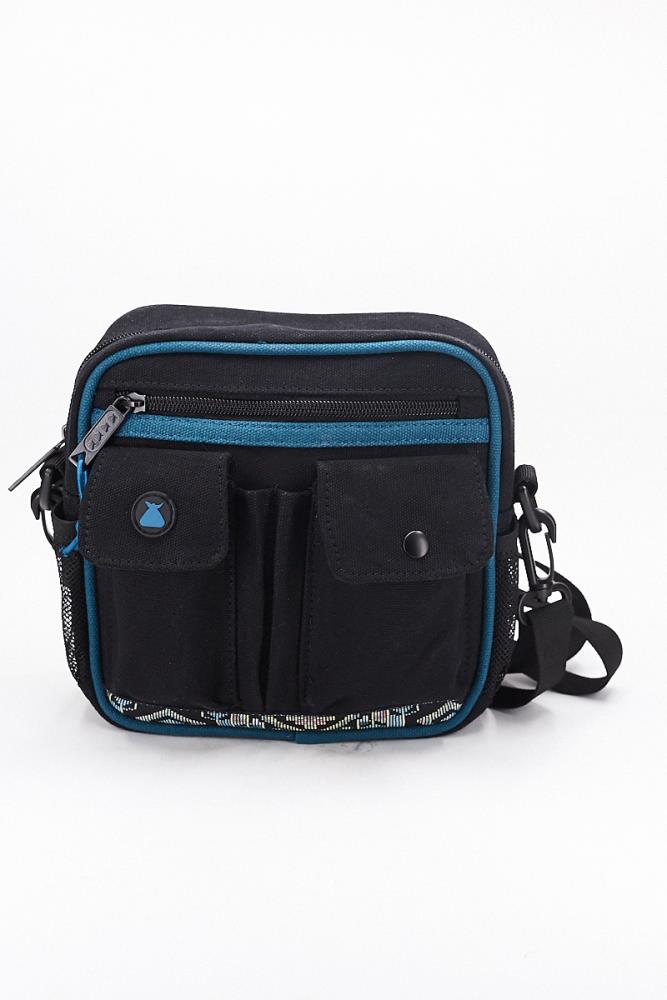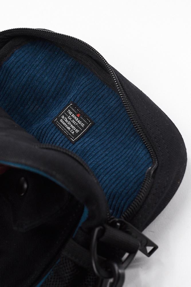 FEATURESCanvasBlue 7 Wale Corduroy LinerBlue Pull RopePatterned RibbonAdjustable StrapMulti PocketOutside Pencil HoldersRubber Sack LabelInside Bumbag Woven LabelBumbag Flag LabelDIMENSIONS8"(W) x 8"(H) x 2.5"(D)