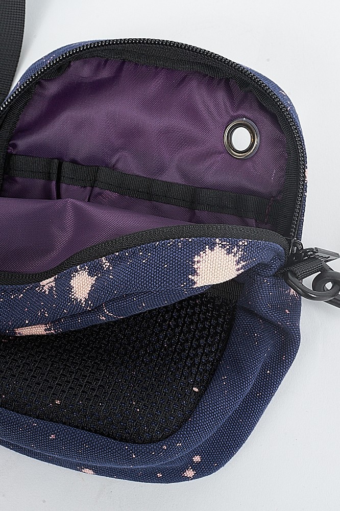 NAVY DENIM BLEACHED WASHEDPURPLE NYLON LININGSINGLE POUCHADJUSTABLE SHOULDER STRAPWOVEN STRIP... mehr