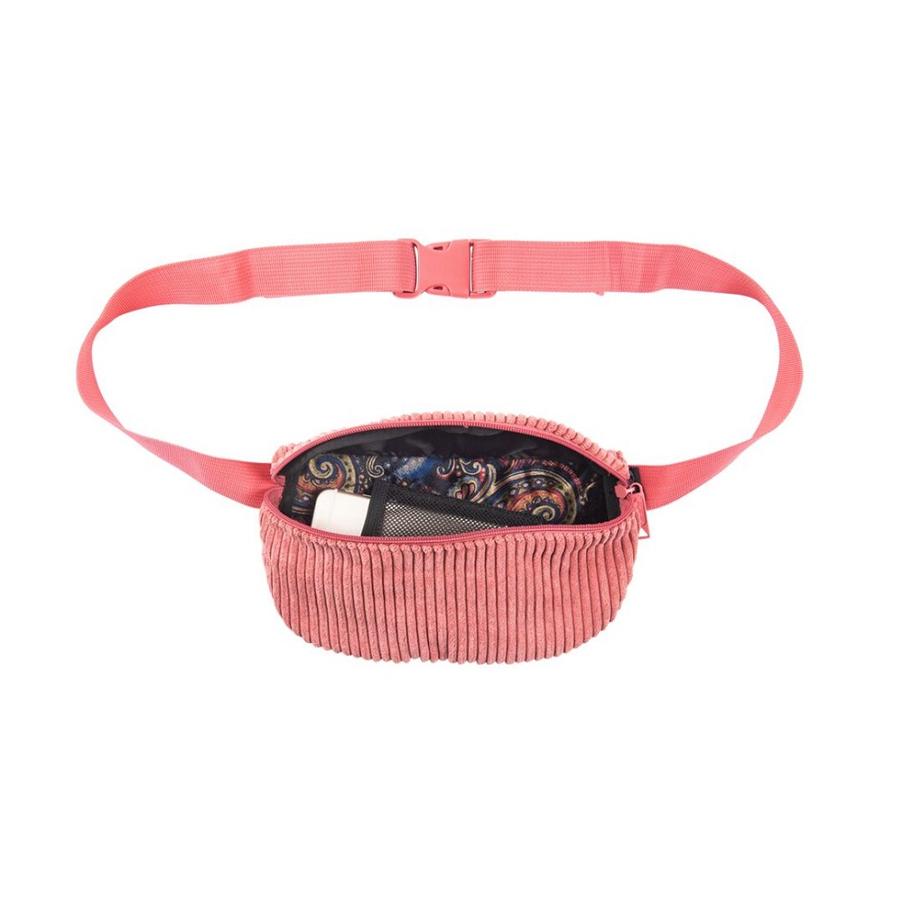 DESCRIPTIONPeanuts make up Jiff, and the peach corduroy Jiff pouch hip pack is made up of one compartment with some crunchy paisley velour lining. If your mom would pick it, wouldn't you?FEATURES5 Wale CorduroyPaisley Velour LinerSingle CompartmentAdjustable Waist StrapBumbag Flag LabelIn & Out Multi-cord Access PortInside Mesh PocketDIMENSIONS5”(H) x 9.5”(W) x 2.5”(D)