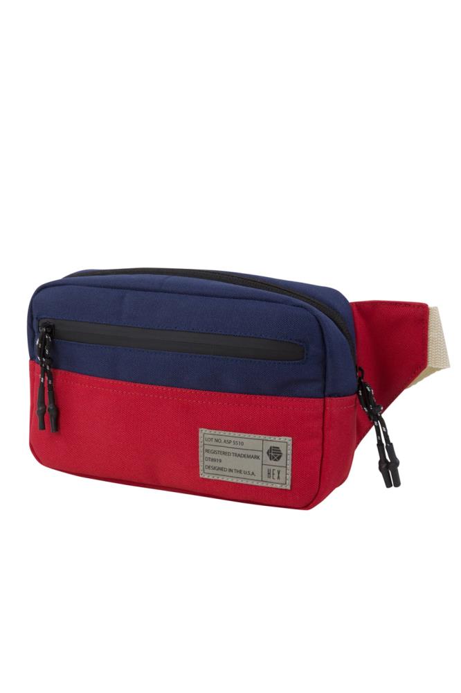 Front zippered pocket Interior mesh pocket Woven Cord Zipper Pulls Overall Dimensions: 8.25"L x 2.25"W x 5.25"H Volume: 1.65LTo compliment the Aspect Collection, we are proud to introduce the Aspect Waist Pack. The outer shell is constructed in 600D nylon that is treated for water resistance. On the front you will find a weather proof zippered pocket. Then unzip the main compartment to find general storage and an elastic mesh pocket for other essentials. The waist band is expandable from 25" - 47" and secures with a heavy duty clasp. Woven cord zipper pulls, and custom HEX Heritage logo lining round out the feature set on this travel bag.