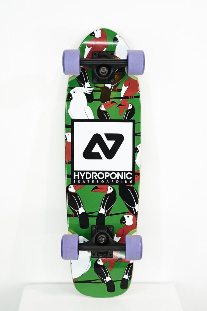 TROPICAL TUCANCruiserDimensions: 26,5 x 7,5 inchesThe Hydroponic TROPICAL has been manufactures with 6 plies of Canadian Hard Rock Maple harvested in reserved areas along with top quality resins, to avoid delamination. It's a lighter deck than usual, equally hard to break due to a reduced Wheel Base.Old School skate cruiser featuring a 70's shape and inspired by surfing, with minimum a mellow concave and a short nose. This small board is able to roll aver almost any kind of surface. Great set up to perform close turns and breaks to avoid street obstacles easily.Smal tail allows for popping ollies, going up curbs and even some flatground tricks.TROPICAL TUCAN127 mm Black trucksBushings 90A Barrel + ConeBUDDHA WHEELS DAKINI Purple, Center Set 60 x 40 mm, 83AHydroponic ABEC 7 Bearings with Spacers