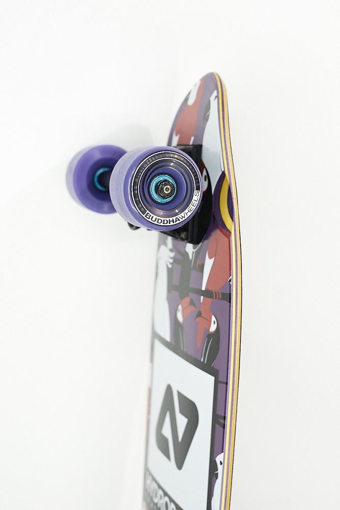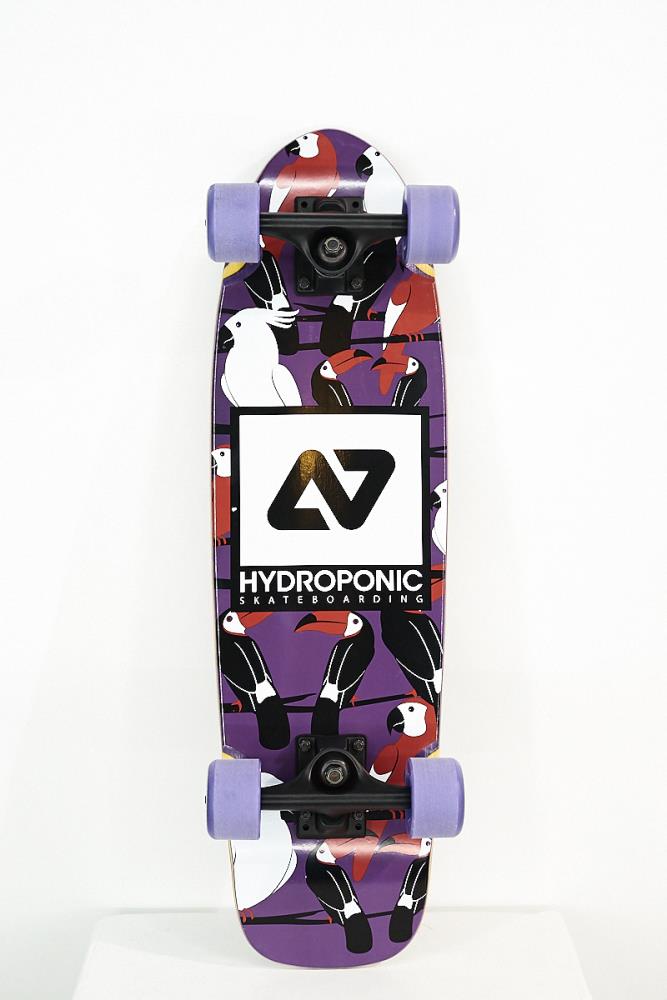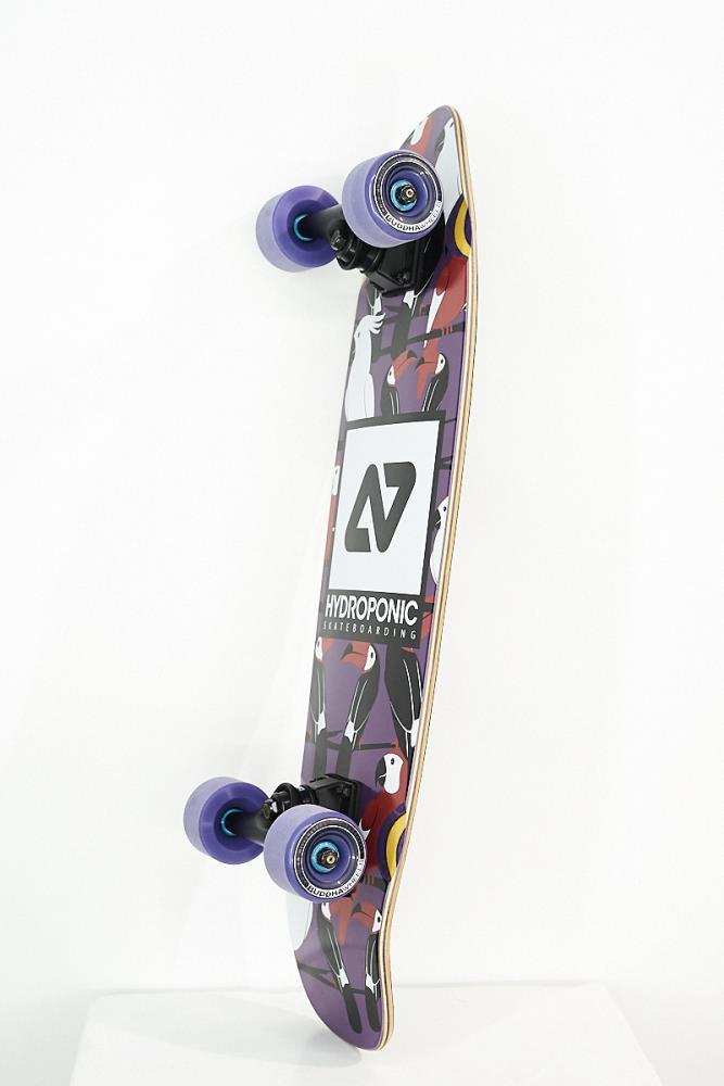 TROPICAL TUCANCruiserDimensions: 26,5 x 7,5 inchesThe Hydroponic TROPICAL has been manufactures with 6 plies of Canadian Hard Rock Maple harvested in reserved areas along with top quality resins, to avoid delamination. It's a lighter deck than usual, equally hard to break due to a reduced Wheel Base.Old School skate cruiser featuring a 70's shape and inspired by surfing, with minimum a mellow concave and a short nose. This small board is able to roll aver almost any kind of surface. Great set up to perform close turns and breaks to avoid street obstacles easily.Smal tail allows for popping ollies, going up curbs and even some flatground tricks.TROPICAL TUCAN127 mm Black trucksBushings 90A Barrel + ConeBUDDHA WHEELS DAKINI Purple, Center Set 60 x 40 mm, 83AHydroponic ABEC 7 Bearings with Spacers