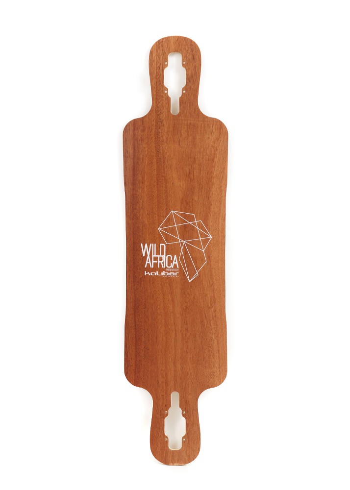 Technische Daten: Länge: 100cmBreite: 24cmFlex: medium und hartConcave: mediumAchsmontage: Drop-Trough Konstruktion: Eschenvollholz Kern, Grip Oberseite Buchenfurnier mit Biax- und uni Glasfaser verstärkt, Unterseite Nussbaumfurnier mit Biax- und uni Glaserfaser verstärkt. Für Ober- und Unterseite wurde eine extra Oberfläche entwickelt für bessern Grip.Beschreibung:Kaliber Skateboards steht bereits seit 2000 für echte Handarbeit aus einem deutschen Betrieb. Und so steckt auch in der neuen Wild Africa-Serie wieder viel Leidenschaft fürs Longboarden, die man bei jeder einzelnen Session genießen wird.Der Leopard sorgt mit seinen Twin-Tips für Leidenschaft beim Longboarden. Es ist ausgestattet mit Kicks, was dieses Brett vielseitig einsetzbar macht. Als Allrounder ist es mit Vorspannnung versehen und etwas kürzer, als der Löwe. Durch die Drop-Through Achsmontage steht das Brett fürs ausgedehnte Cruisen, genauso wie für eine wendige Freeride-Session. Die Concave zieht sich durchs ganze Board und stellt dabei sicher, dass der Leopard nie außer Kontrolle gerät. Flexhärte ist auf der Brettunterseite am dt (dropthrought) mit M für Medium und mit H für Hart, eingestanzt.