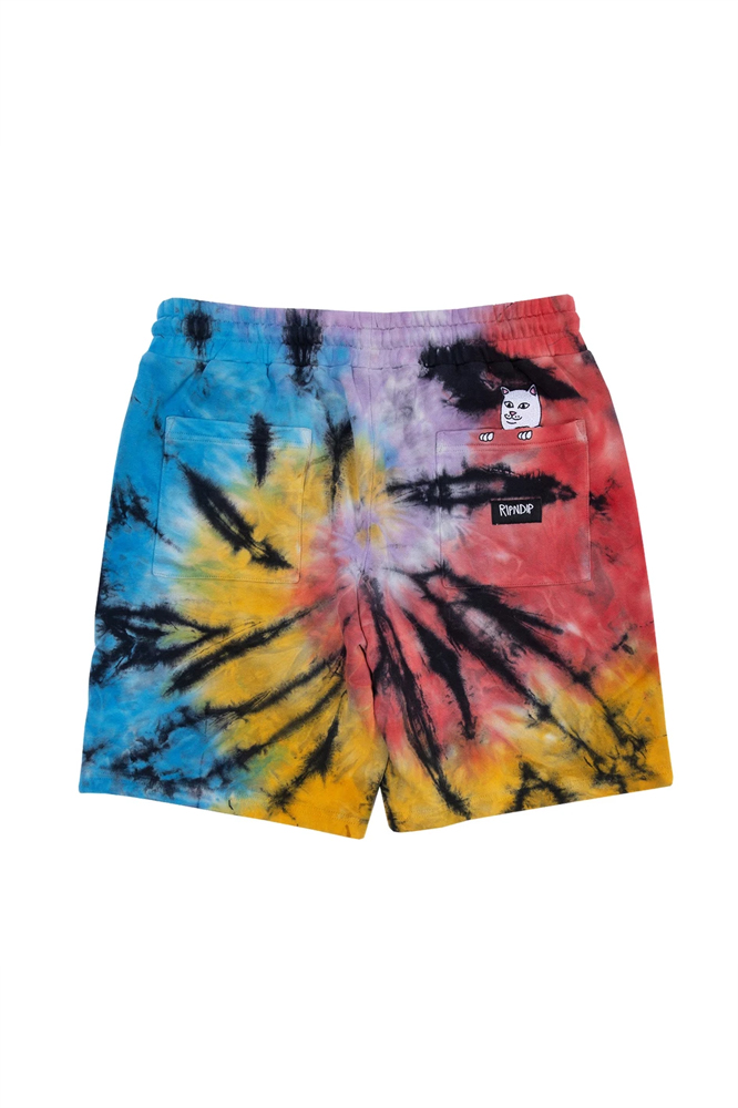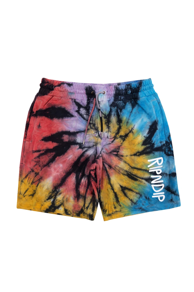 RIPNDIP Rubber Logo Sweatshorts Sunburst Spiral Tie Dye