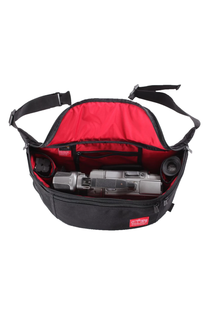 Working closely in collaboration with NYC bag maker, Manhattan Portage, Josh Stewart custom developed this lightweight and fully skate-able camera bag SPECIFICALLY designed to the dimensions of a VX1000. Including pockets to hold 2 extra VX batteries, your eye-piece, phone and netted external pockets for wax, tapes and a tool, this bag packs the features of a full camera bag without the physical burden. For comfort and security, it features an optional support strap to keep the bag locked in place between your shoulder blades while pushing down the street. Constructed from durable black cordura and a red nylon lining, this unique design will be a Godsend for every VX filmer who has killed their back wearing a heavy camera bag and just needs something simple for a day out in the city.
